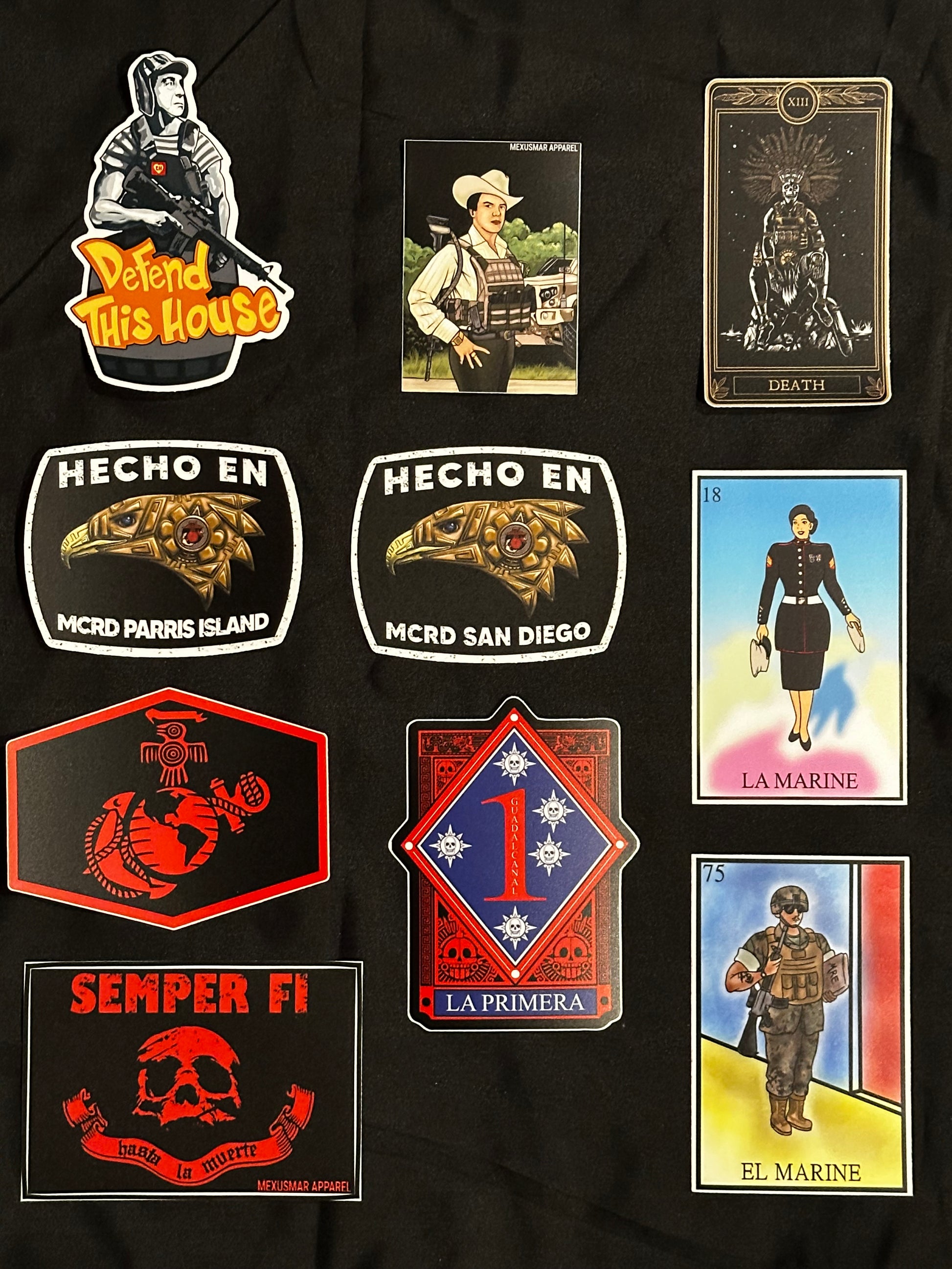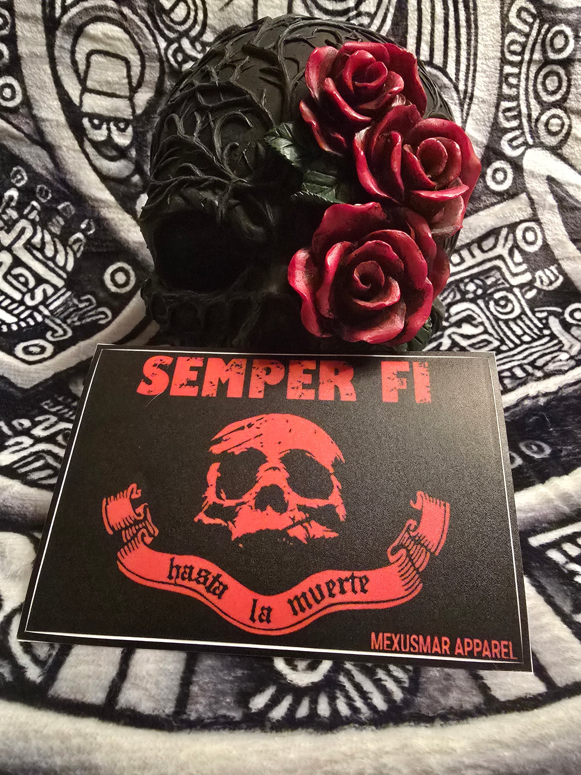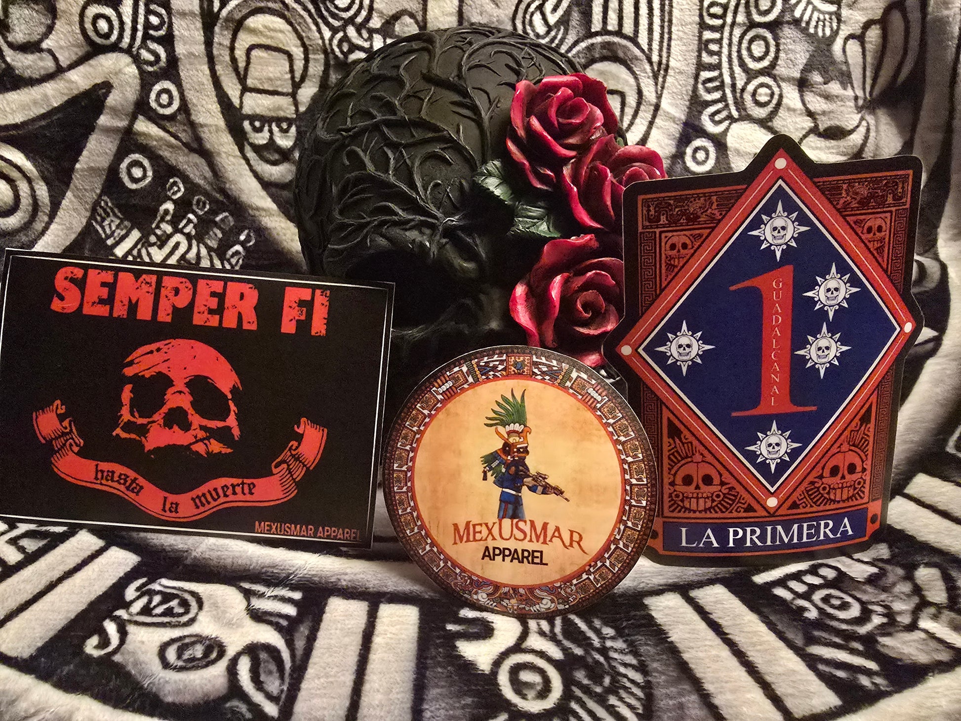 Semper Fi Hasta La Muerte, La Primera and MEXUSMAR Apparel decal stickers. Quality matte finish. This material is strong, reliable, and versatile, perfect for indoor or outdoor use. Stickers made with thick, durable vinyl material that will withstand any kind of weather.